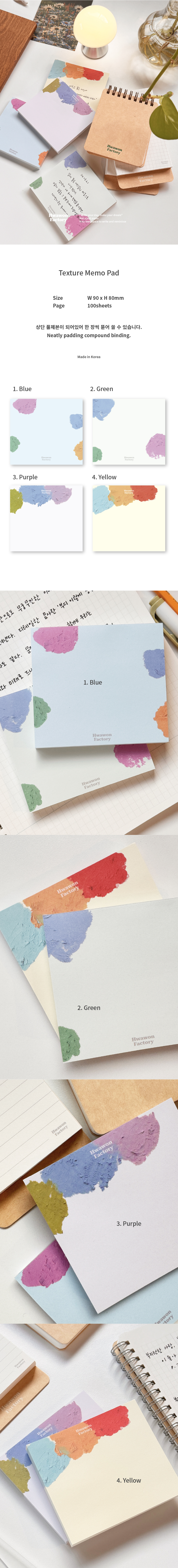 Hwawon Color Textured Pattern MemoPad 4 types