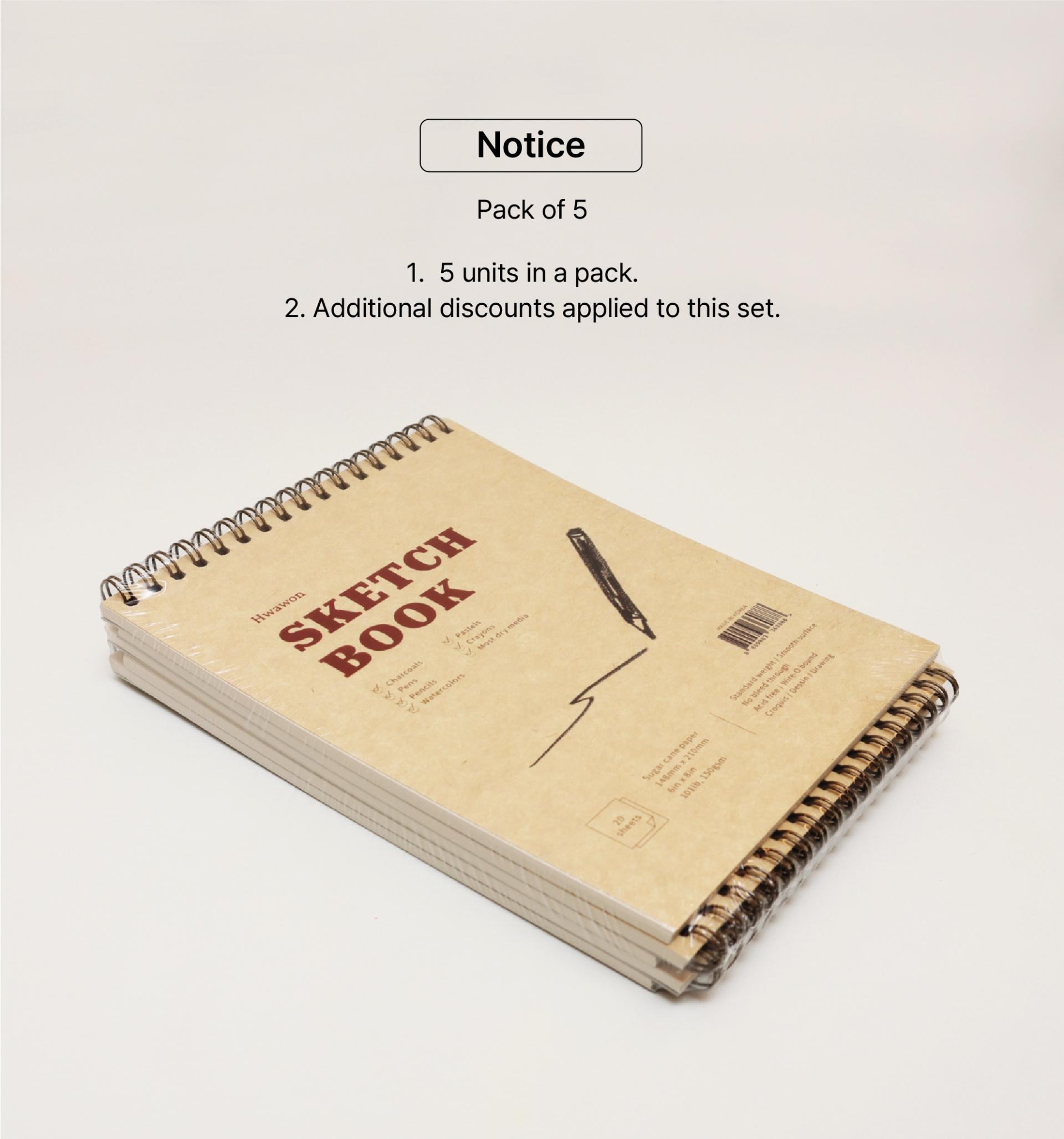 Hwawon [Pack of 5] Sketch Book Sugarcane Paper